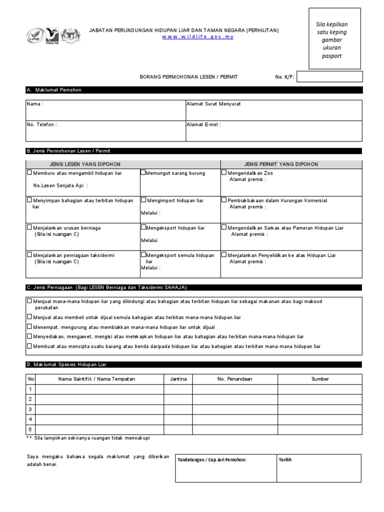 Mengisi butiran borang permohonan lesen perniagaan dan iklan seperti di lampiran c. Akta pemuliharaan hidupan liar 2010 akta 716 membenarkan pengambilan beberapa jenis lesen yang berkaitan dengan hidupan liar. Maklumat Spesies Hidupan Liar Saya mengaku bahawa segala maklumat yang.
