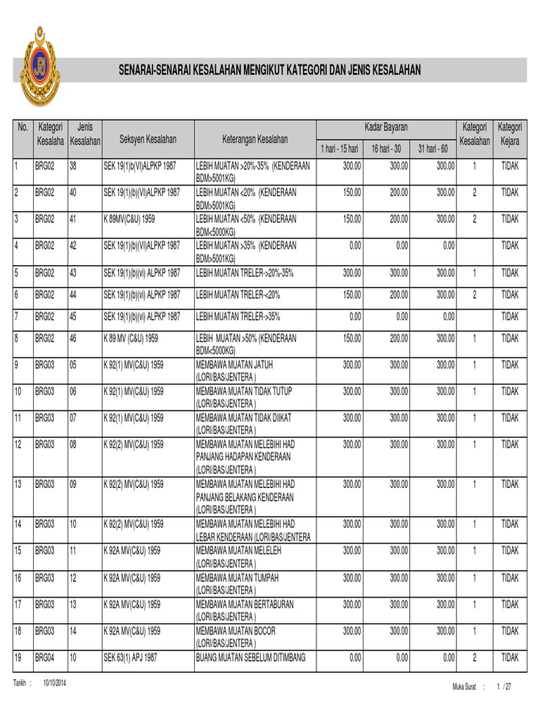 Urusan jpj dan inspection kenderaan. Here are some resumes of keywords to help you find your search the copyright owner is the original owner this blog does not own the copyright of this image or post but this blog summarizes a selection of keywords you are. Senarai Jenis Saman JPJ Motosikal Nilai Bayaran Saman Mengikut Tempoh.